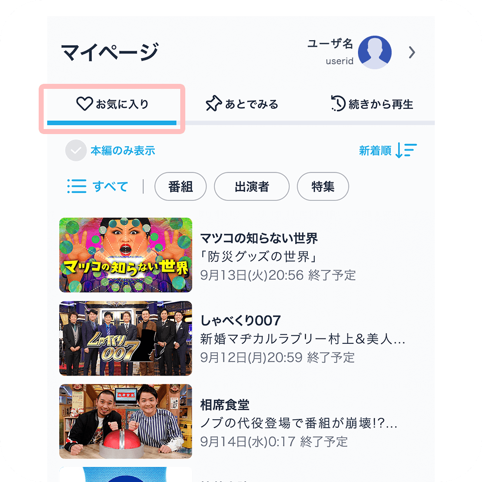 ※ログインしない場合は、それぞれ50番組、50名となります。